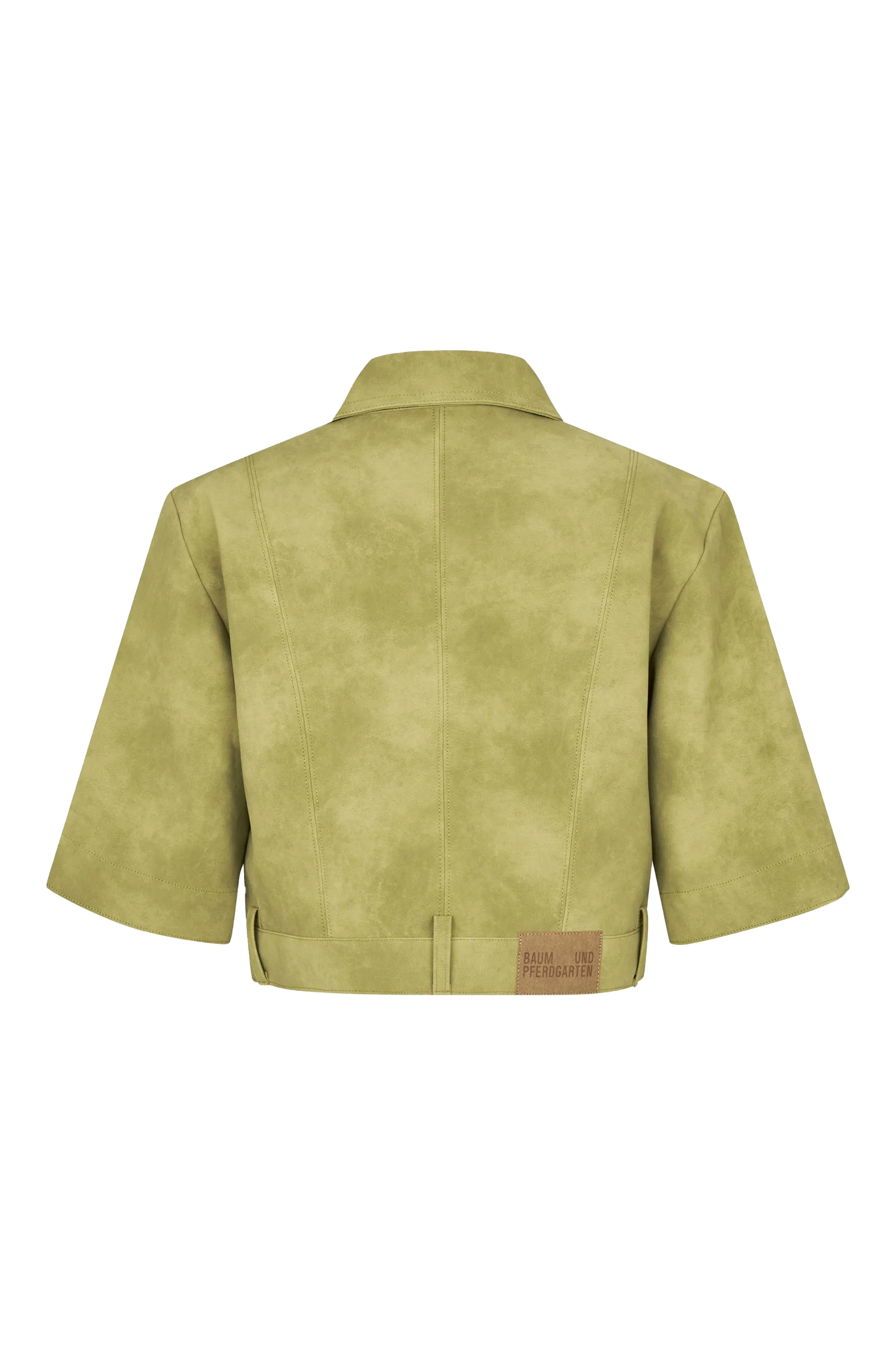 Deze Majsa groen dames blouse met korte mouwen heeft een recht en kort model. Het kledingstuk van Baum und Pferdgarten is voorzien van een klassieke kraag en een zichtbare knoopsluiting aan de voorzijde. Op de borst zijn twee vierkante zakken geplaatst. De blouse heeft wijde mouwen en is afgewerkt met een bruin merklabel aan de achterzijde bij de onderkant.
