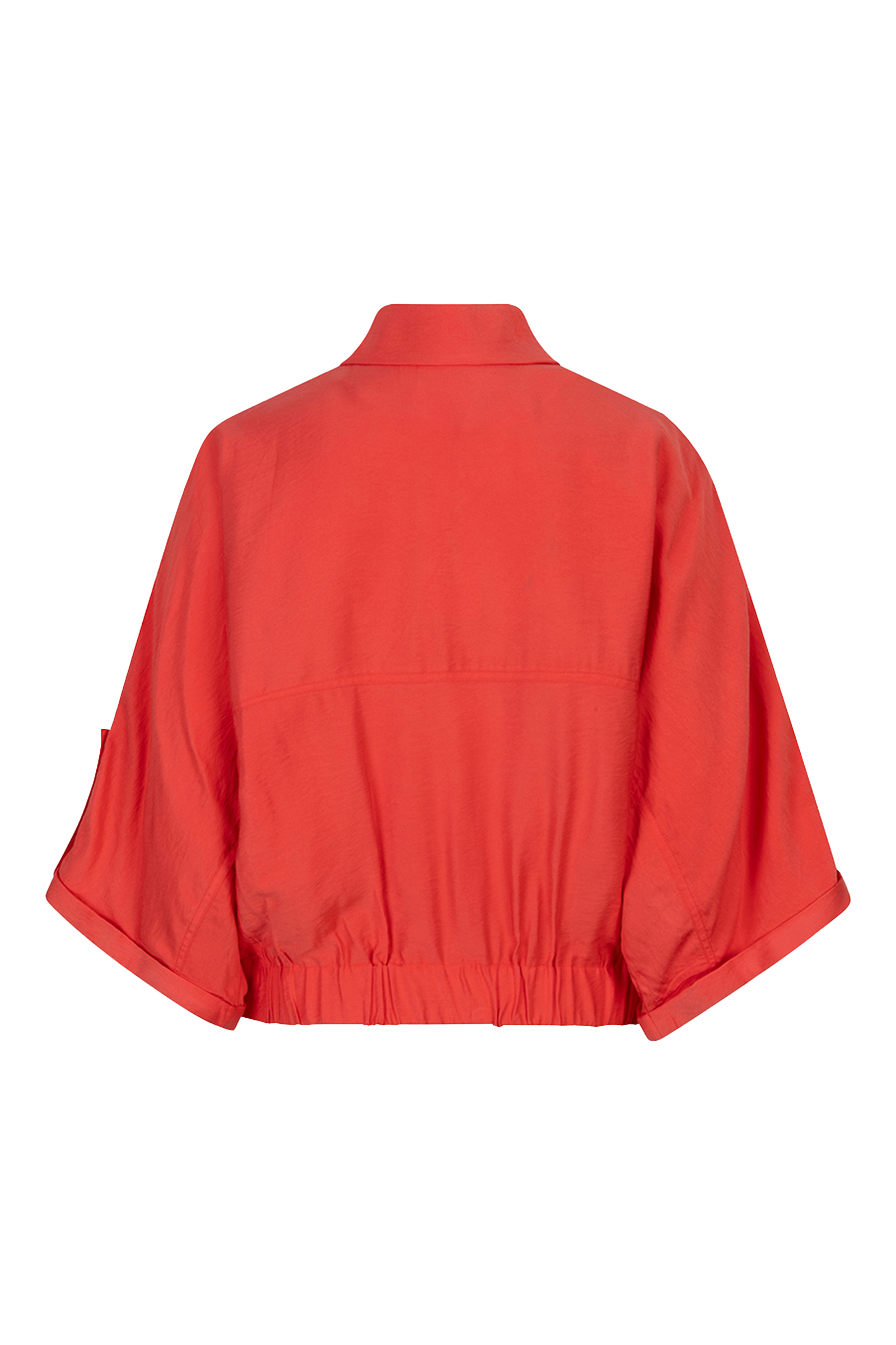 De taille van dit jacket is voorzien van elastiek, waardoor de onderkant mooi aansluit. Je combineert deze rode korte mouw blouse gemakkelijk met een high waist broek of rok voor een moderne look. Voor een casual set style je dit jack met de bijpassende broek, zoals je op de foto ziet. Bekijk meer items van Esqualo om jouw optimistische en casual garderobe compleet te maken.Productkenmerken
