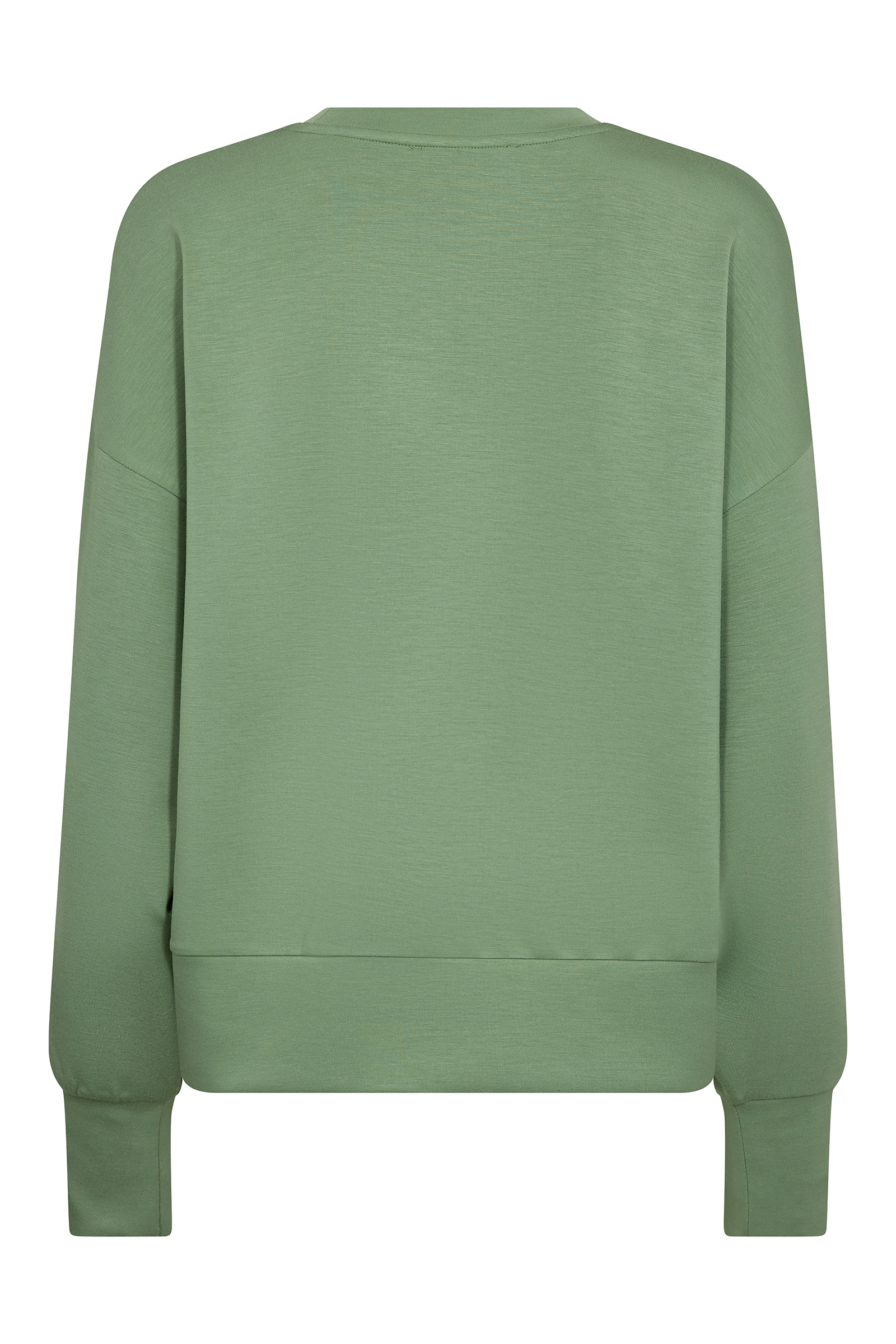 De Mos Mosh dames sweater groen heeft een regular fit en valt ruim om het bovenlichaam. Door de elastische boorden aan de onderzijde en de mouwen krijgt de trui een licht ballon effect. Combineer deze groene trui met de bijpassende Mos Mosh kleding broek voor een complete lounge set, of draag de sweater met een donkere jeans.Productkenmerken