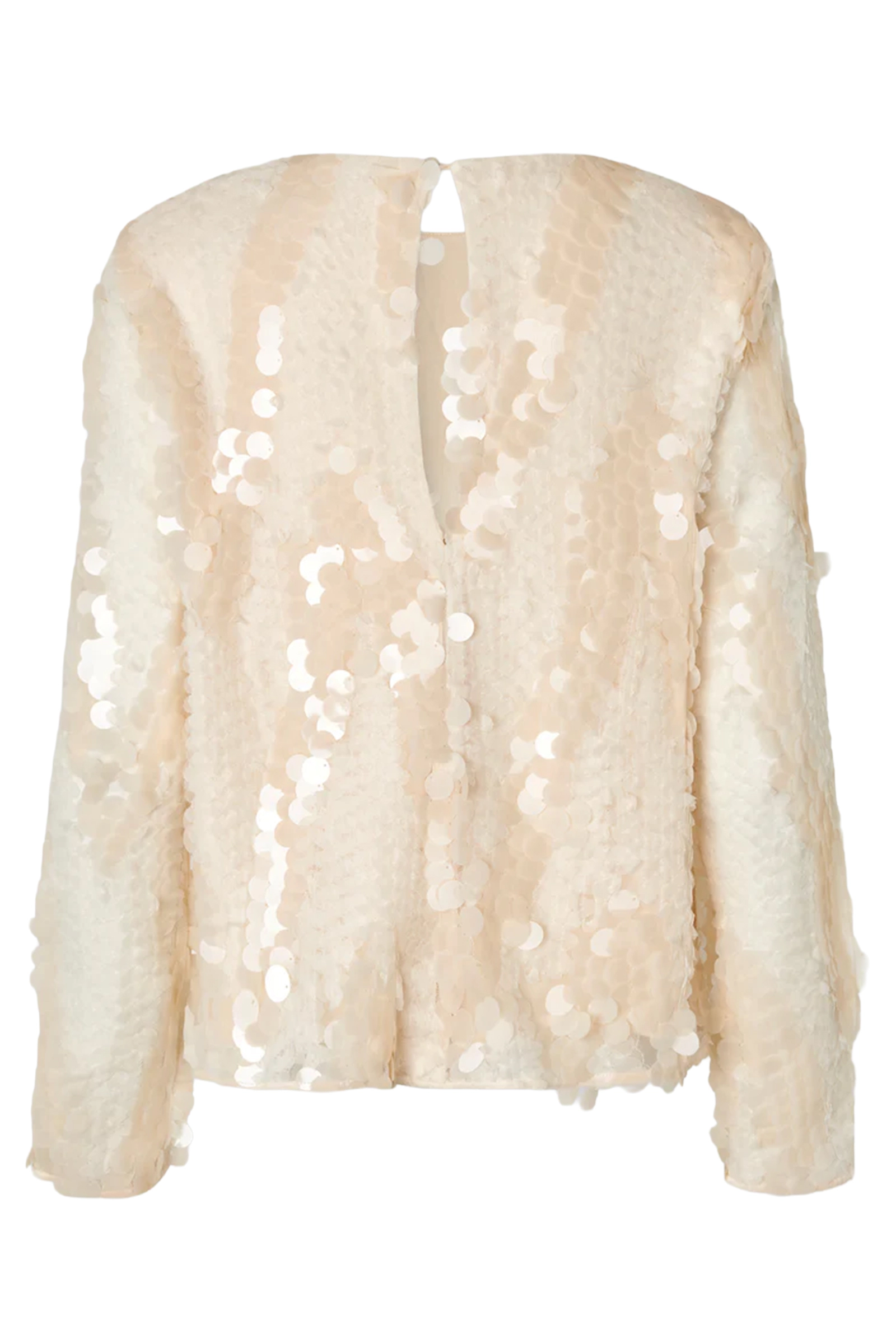 Deze blouse straalt een verfijnde Parijse flair uit en is een absolute must-have voor je garderobe. Met een elegante pasvorm en glinsterende pailletten is deze blouse perfect voor speciale gelegenheden. De subtiele kleuraccenten zorgen voor een tijdloze uitstraling die eenvoudig te combineren is met verschillende stijlen.