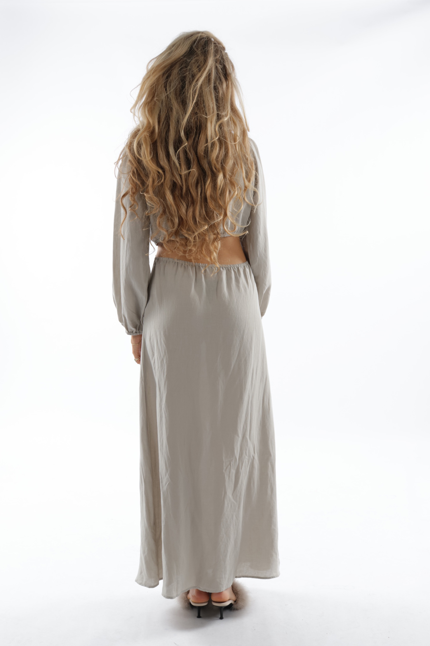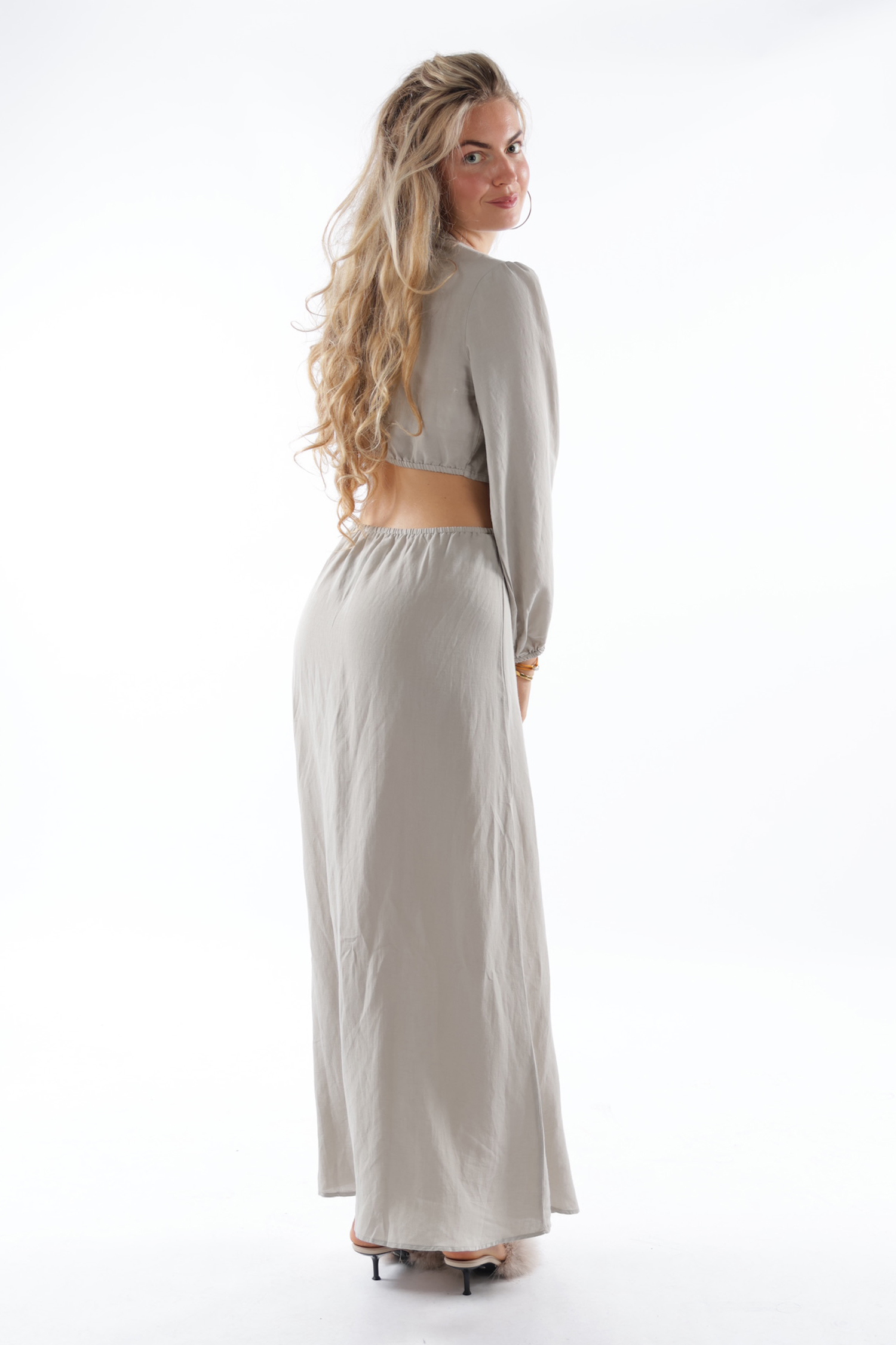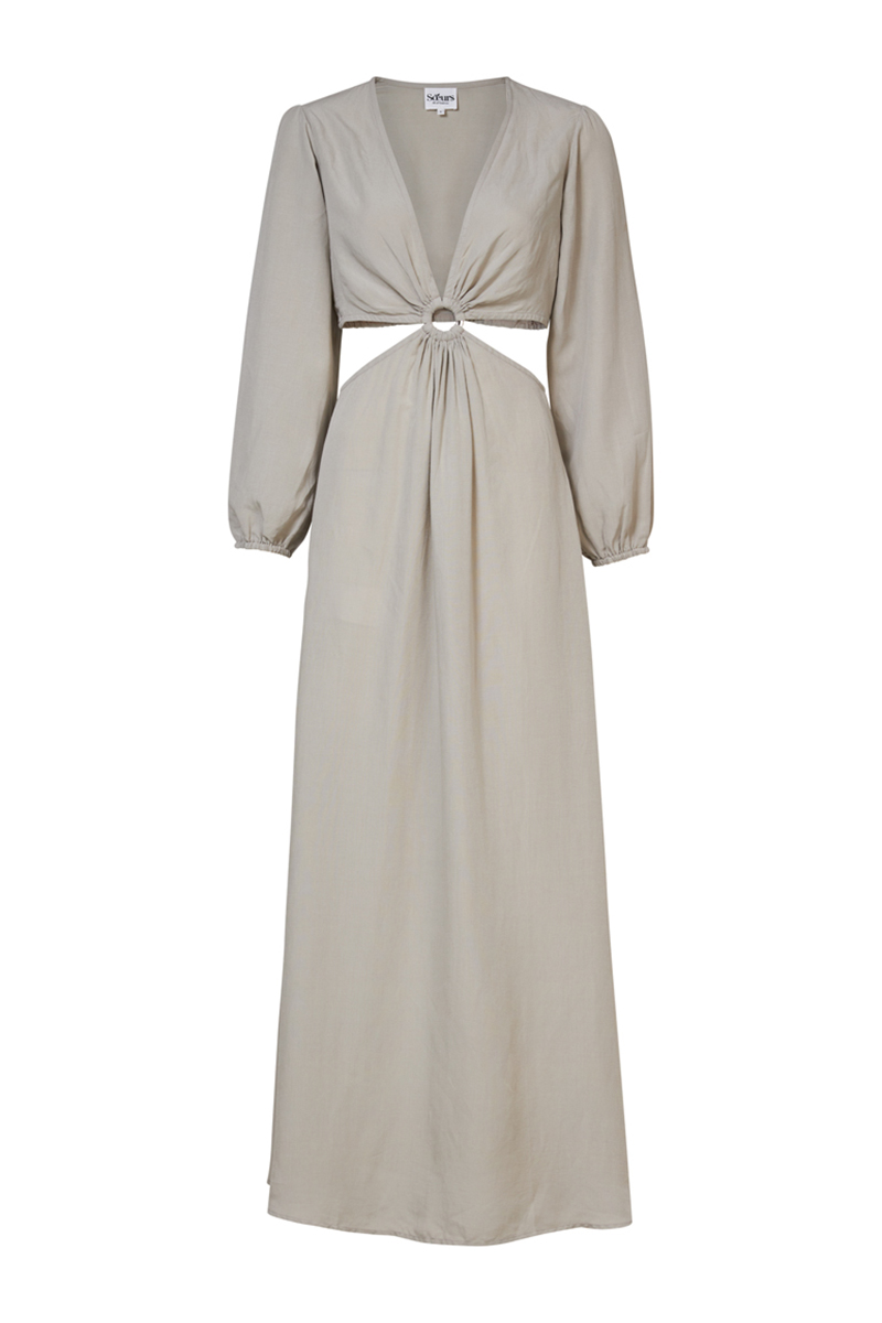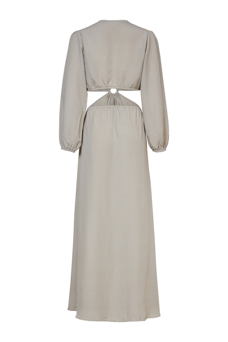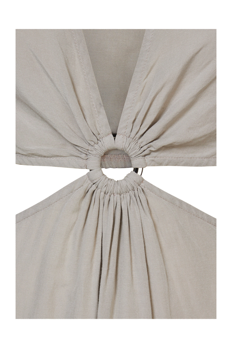 De diepe halslijn, speelse cut-outs in de taille en zwierige rok bewegen mee met jouw dag (of nacht). Ze voelt zich net zo thuis op een terras als op de dansvloer.