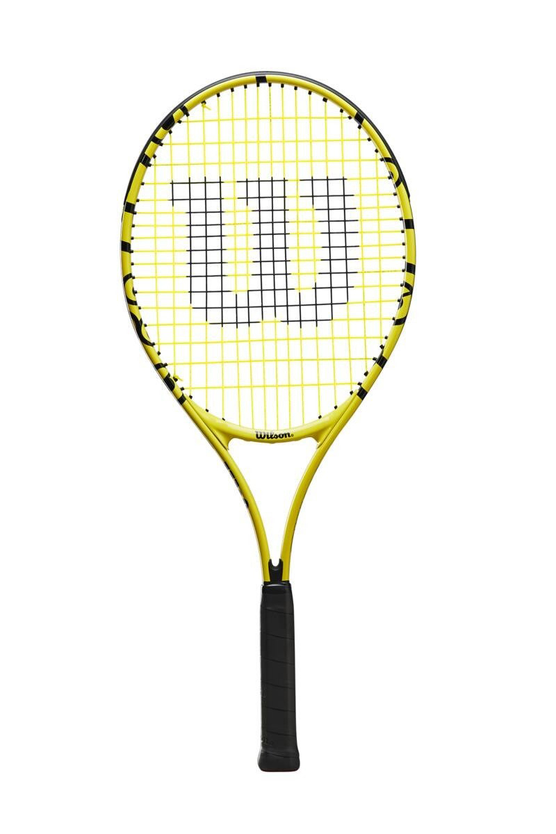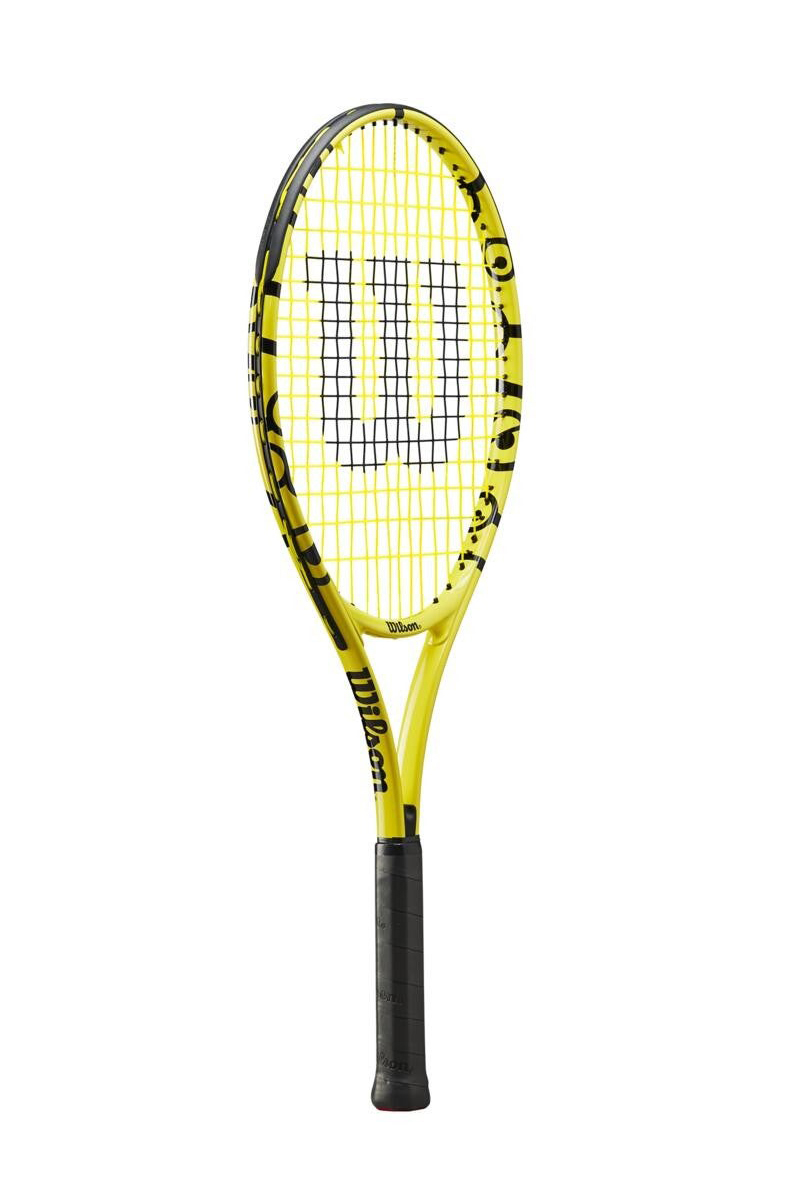 Gemaakt met op minions geïnspireerd DNA om het razend populaire wereldwijde fenomeen te herdenken, combineert het Minions 25 junior racket een leuk ontwerp met uitstekende prestaties. Een frame dat veel lichtgewicht kracht en stabiliteit biedt voor jonge junior spelers. Dit voorgespannen racket heeft een bumperbeschermer langs de bovenkant van het frame om schade aan de oppervlakterand te voorkomen. Perfect voor jonge kinderen die houden van de avonturen van de vermakelijke handlangers. Dit tennis racket van Wilson wordt verkocht inclusief snaren en hoes.